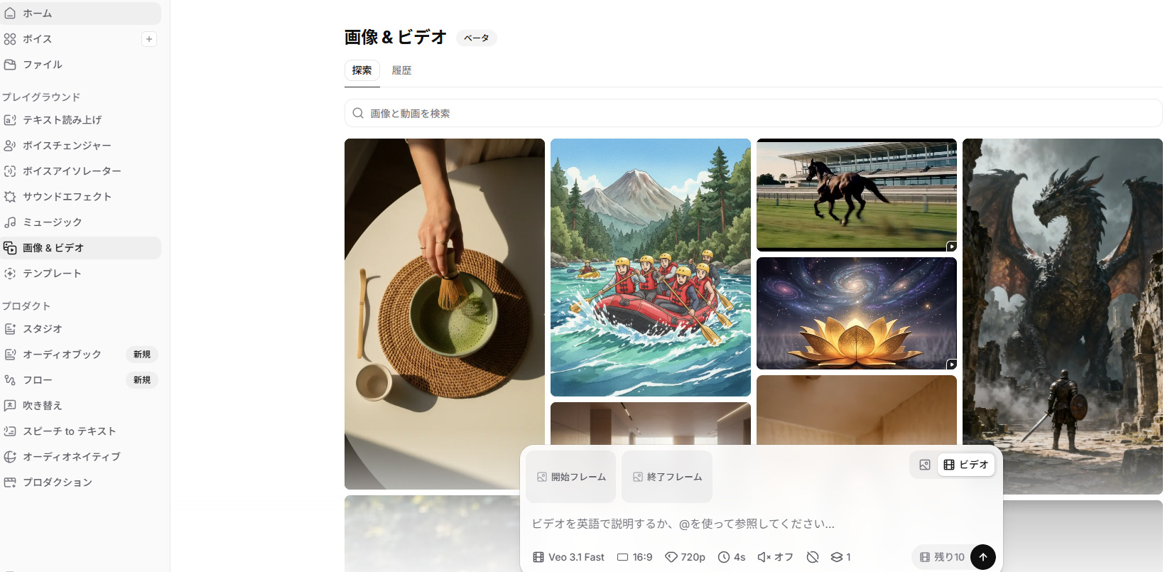動画や音楽の生成には、ElevenLabsの共通クレジットを使用します。