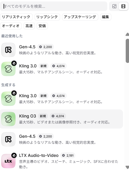 2-1. RunwayやKlingなどの最新モデルが使える
